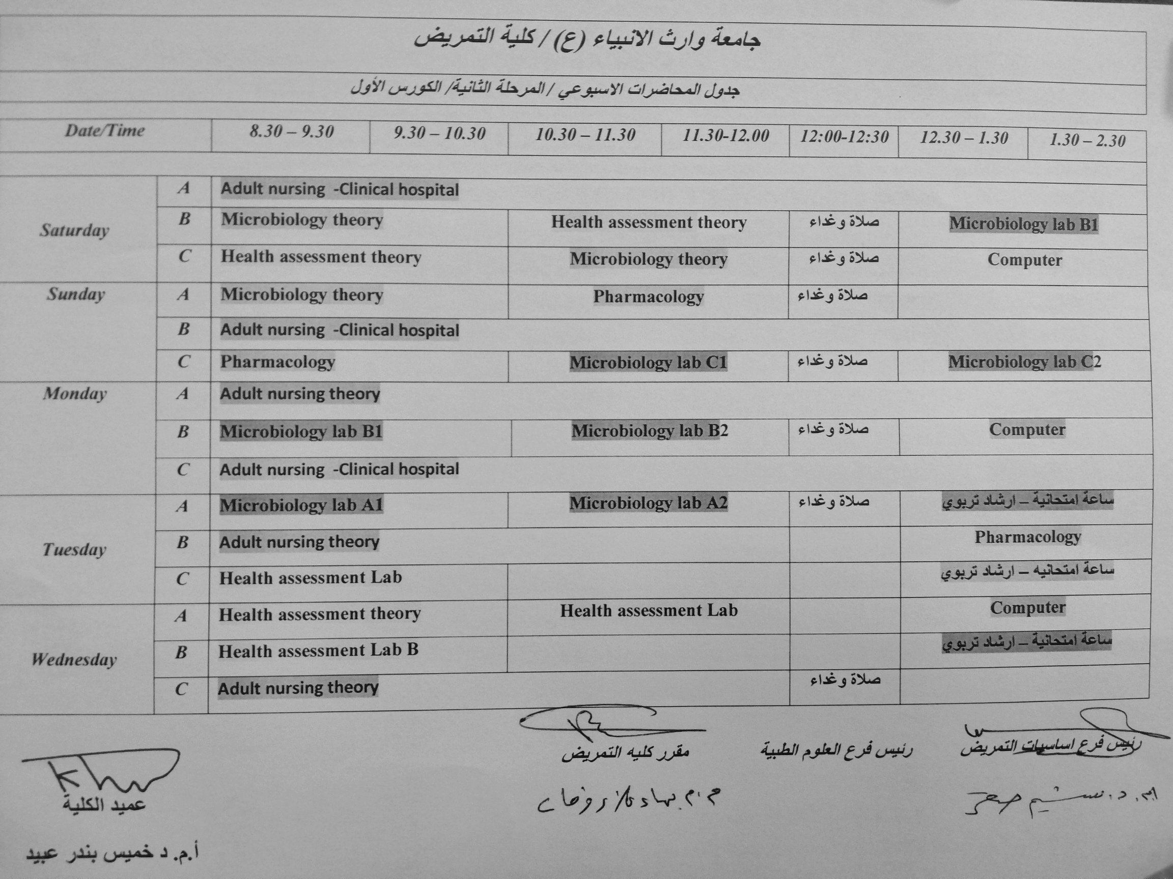 الجدول الاسبوعي للمرحلتين الثانية والثالثة الفصل الاول / العام الدراسي 2020/2019