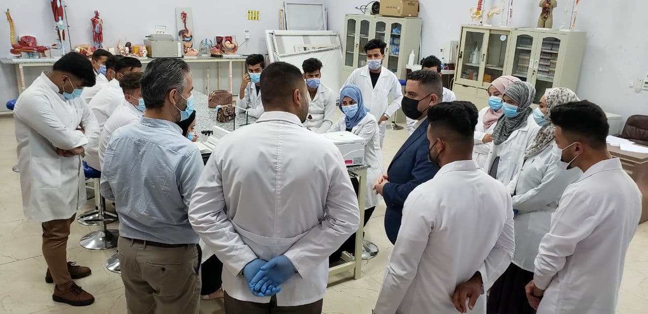 تفقد عميد كلية التمريض في جامعة وارث الانبياء ع الأستاذ المساعد الدكتور مرتضى غانم الجبوري سير المحاضرات العملية الحضورية لطلبة كلية التمريض - المرحلة الأولى