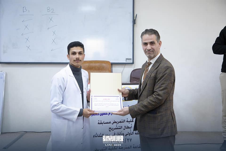 برعاية عميد الكلية الاستاذ الدكتور مرتضى الجبوري، والسيد معاون العميد الاستاذ المساعد الدكتور اقامت كلية التمريض في جامعة وارث الانبياء(عليه السلام) مسابقتها الاولى لطلبة المرحلة الاولى بعنوان (أبطال التشريح)Anatomy champions وجاءت هذه المسابقة لتحفيز الطلبة وتحقيق اكبر قدر من الفائدة في إستحصال المعلومات عن هذه المادة المهمة في مهنة التمريض حيث تم منح الطلبة الفائزين جوائز وشهادات تقديرية.