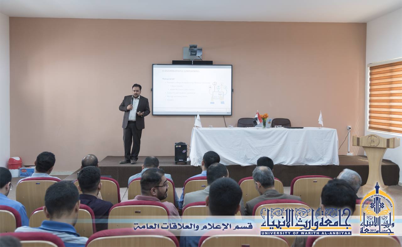 اقام مركز التعليم المستمر وبالتعاون مع قسم ضمان الجودة والأداء الجامعي حلقة نقاشية بعنوان ( الامتحانات الإلكترونية) القاها الدكتور علي فوزي التدريسي في جامعة كربلاء / كلية الهندسة، وقال الدكتور حاكم سماوي سلطان مدير مركز التعليم المستمر ان هذه الحلقة انطلقت ضمن اسبوع الجودة الذي سيكون اسبوع توعوي تثقيفي حول ضمان الجودة والأداء الجامعي في جامعة وارث الأنبياء (عليه السلام)، وتحدث الدكتور علي فوزي ان هذه الحلقة ألقيت لرفع الغموض والمخاوف عن هذا الموضوع لان الامتحانات الإلكترونية والتعليم الالكتروني اصبح حاجة ملحة وان اغلب الجامعات بدأت تدريجياً بتطبيقه وان المشكلة التي يعاني منها اغلب الاساتذه والطلاب انهم غير مهيأين على الطريقة الالكترونية، لذالك جاءت هذه المحاضرة لشرح المحددات والفوائد الكثيرة للامتحان الإلكتروني وماله من تسهيلات كثيرة للاساتذه في وضع الاسئلة وتصحيح وإعطاء النتائج بصورة سريعة