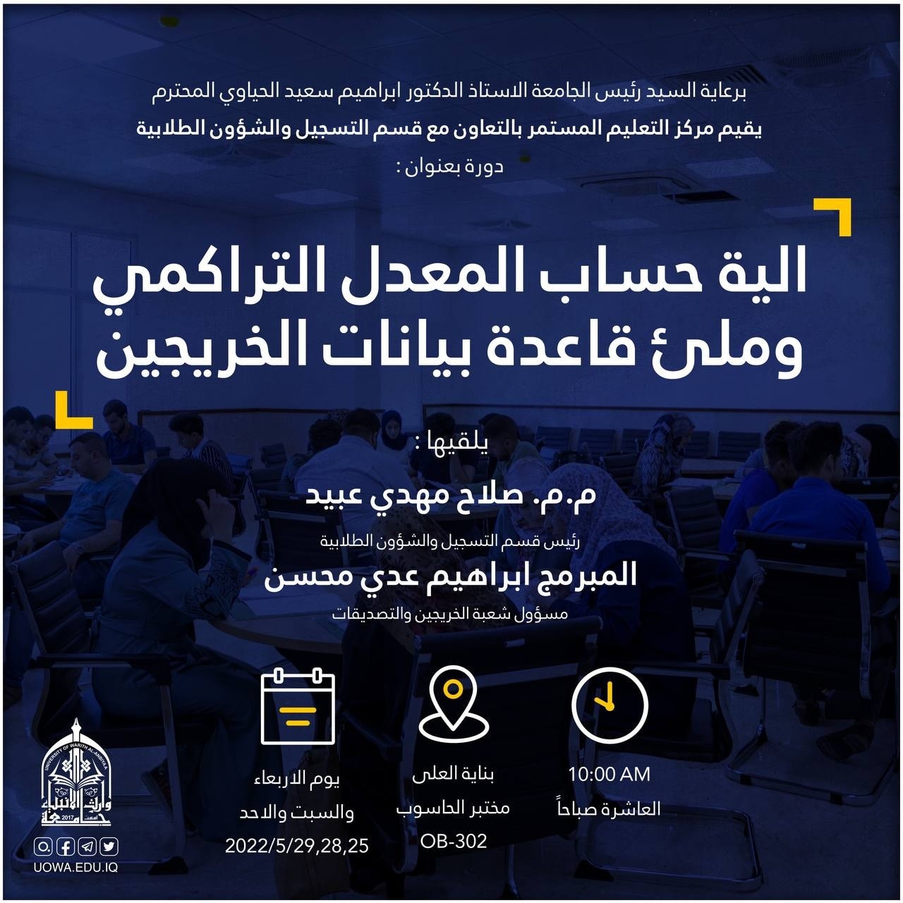 دورة بعنوان "آلية حساب المعدل التراكمي وملء قاعدة بيانات الخريجين"