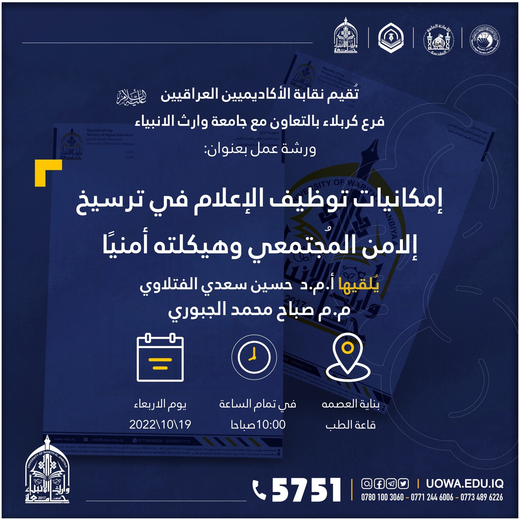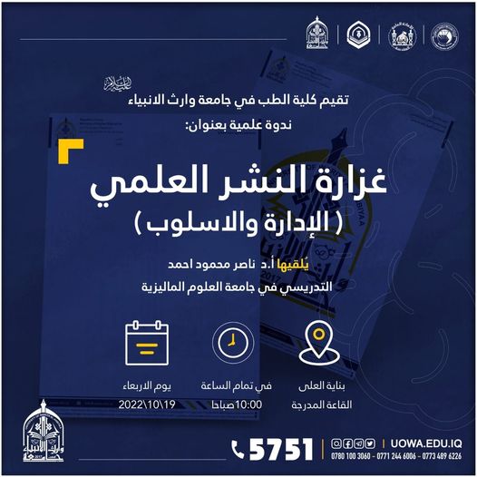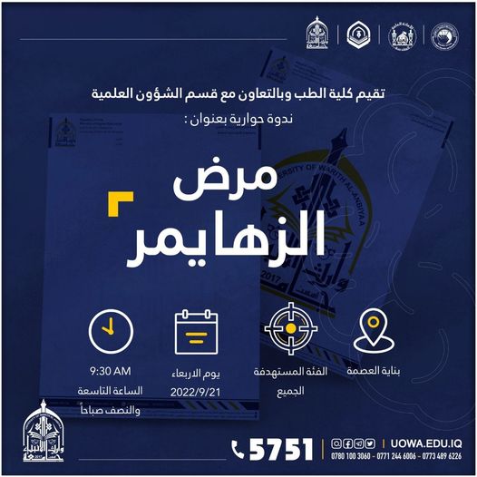 وذلك في بناية العصمة/ قاعة الطب في تمام العاشرة من صباح اليوم الأربعاء 19-10-2022