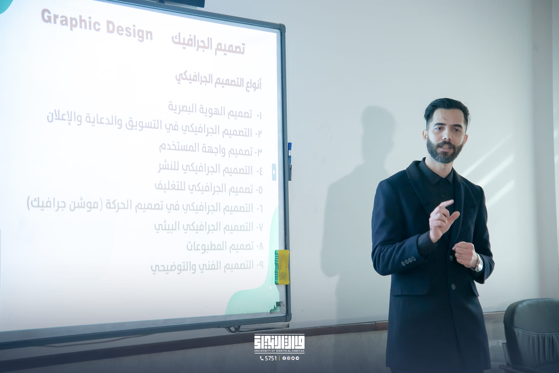 بحضور السيد رئيس الجامعة الاستاذ الدكتور ابراهيم الحياوي، وعميد الكلية الدكتور محمد جمال الطيف، أقامت كلية الإعلام/قسم الإعلام الرقمي، وبالتعاون مع قسم الإعلام في العتبة الحسينية المقدسة، ورشة علمية بعنوان" التصميم الرقمي باستخدام تقنيات الذكاء الاصطناعي " قدمها المصمم أسامة عدنان الخياط من إعلام العتبة الحسينية المقدسة.