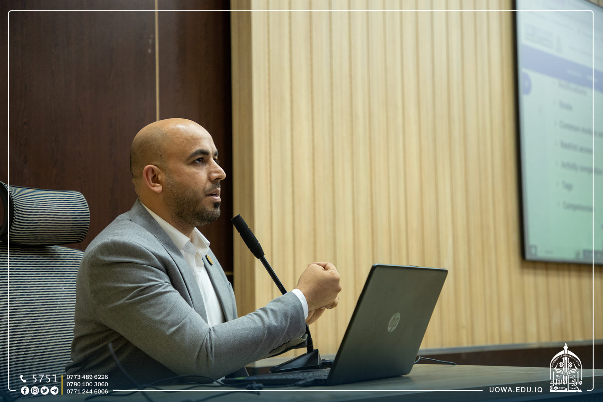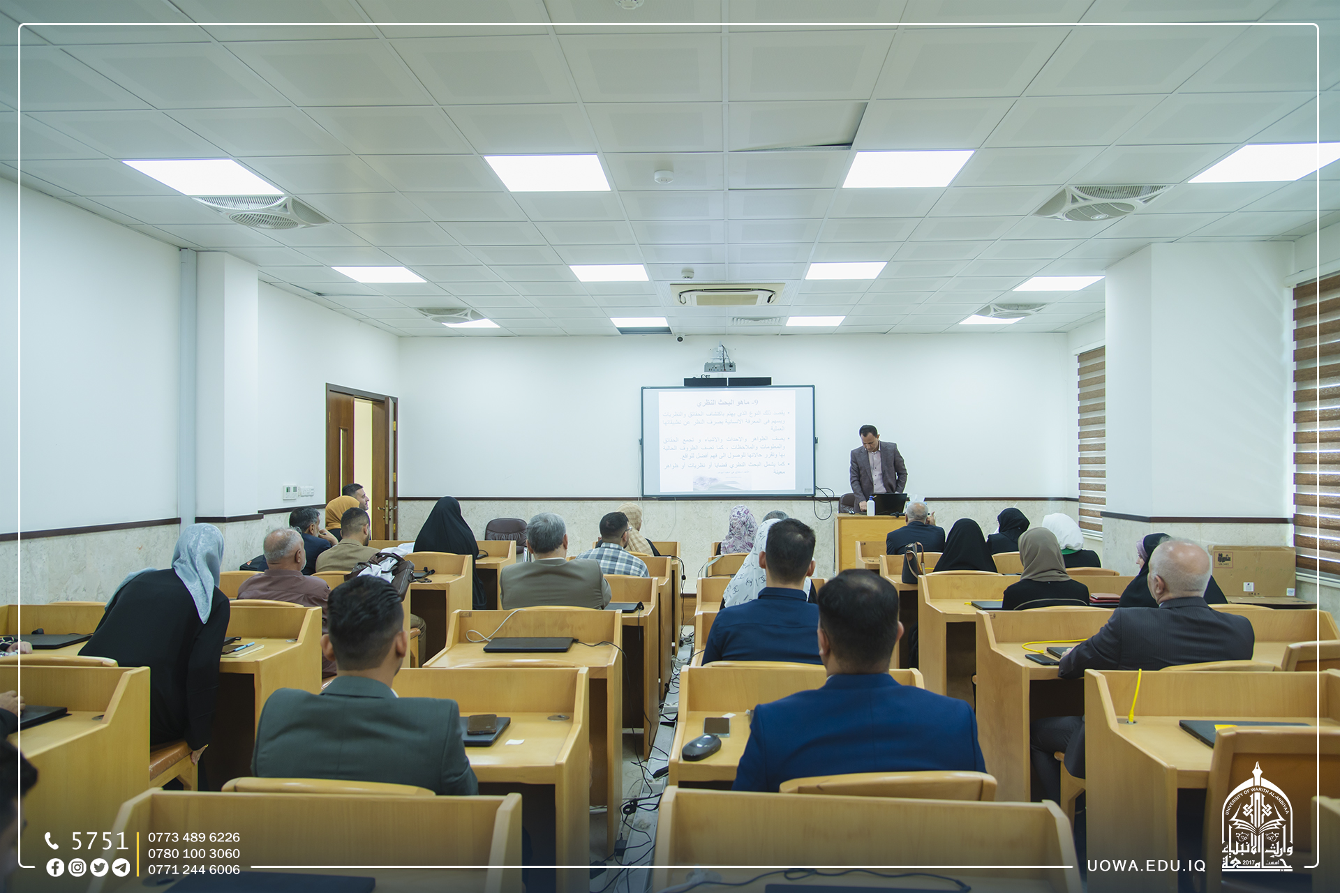 جامعة وارث الانبياء(عليه السلام) وبالتعاون مع قسم تطوير الموارد البشرية في العتبة الحسينية المقدسة تقيم ندوة علمية بعنوان (العولمة اللادينية )، قدمها الإعلامي الدكتور مظفر قاسم.