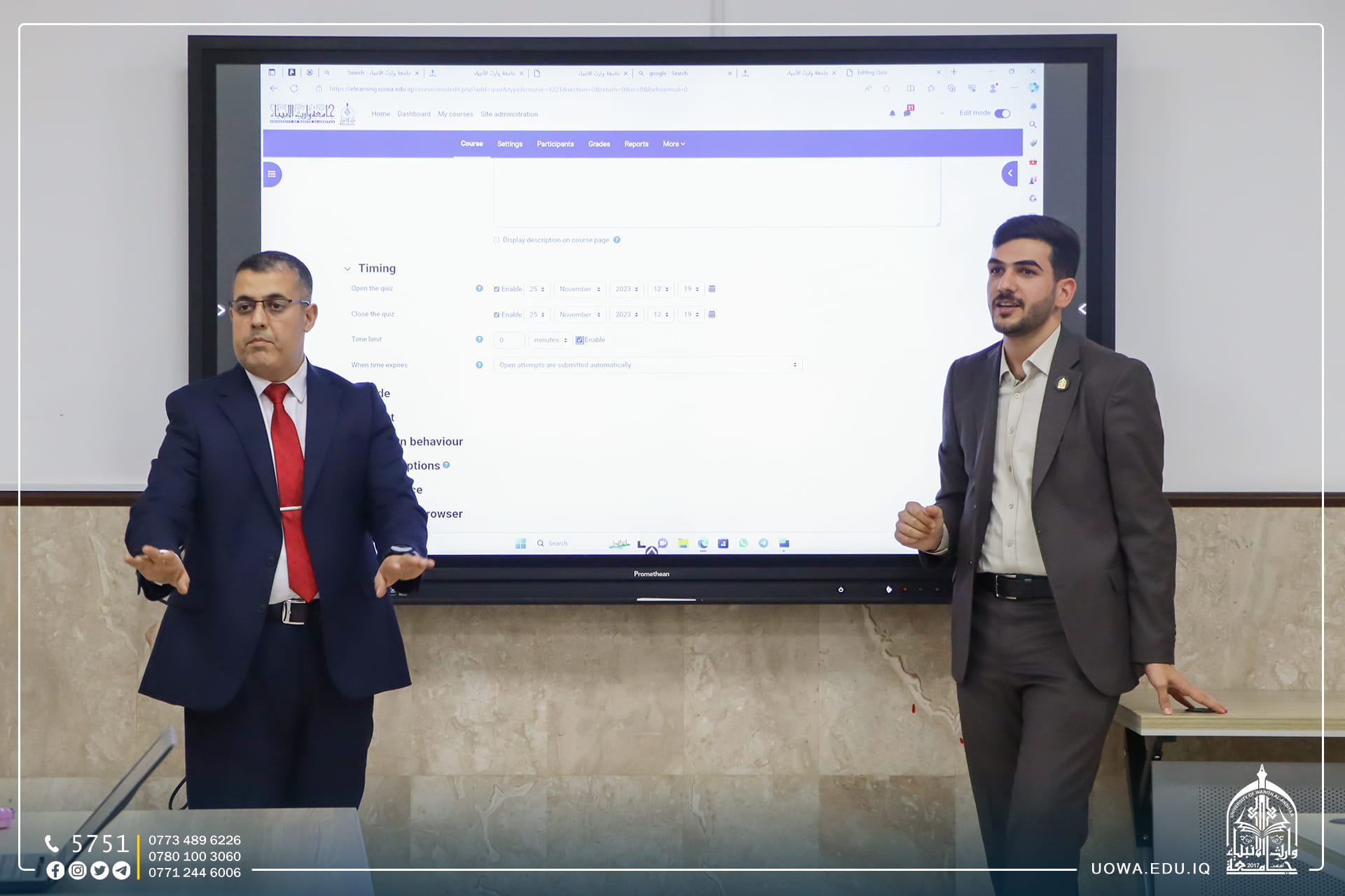 تماشيًا مع سياسات الحوكمة الإلكترونية التي تتبناها جامعة وارث الأنبياء (عليهم السلام)، نظمت عمادة كلية الطب سلسلة من الورش الإلكترونية المخصصة حول "المنصات التعليمية والأنظمة الإلكترونية المستخدمة في الكلية". قدّم هذه الورش المهندس محمد باقر سلام، الذي استعرض مواضيع متقدمة في هذا المجال.في الورشة الأولى، تناول البرنامج Remark Office OMR الذي يُستخدم في تقييم وتحليل الاجابات الورقية بشكل إلكتروني. تم التركيز على كيفية استخدام هذا البرنامج لتسهيل وتسريع عمليات التصحيح وتحليل الأوراق الامتحانية.أما في الورشة الثانية، تم التركيز على Moodle Learning platform، الذي يعتبر نظام إدارة التعلم مفتوح المصدر. تم استعراض ميزات وإمكانيات هذا النظام في تيسير تنظيم وإدارة الدورات التعليمية عبر الإنترنت.شكلت هذه الورش فرصة لأعضاء هيئة التدريس والموظفين في كلية الطب لتعزيز فهمهم ومهاراتهم في استخدام المنصات التعليمية والأنظمة الإلكترونية، مما يسهم في تحسين جودة التعليم وتعزيز تجربة الطلاب.