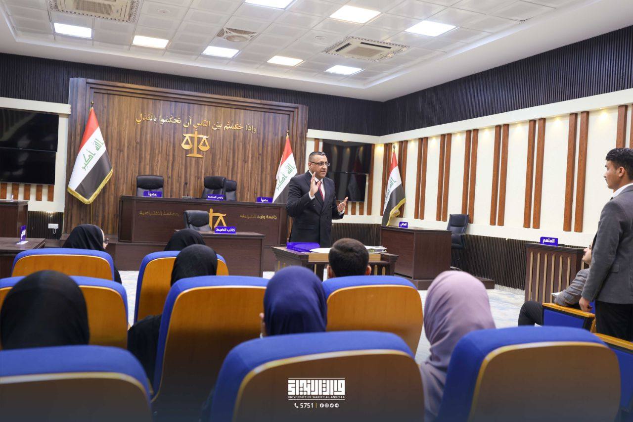 As part of the academic cooperation between the Karbala Court of Appeals and the College of Law at Warith Al-Anbiyaa University (PBUH), Judge Rassem Al-Yasiri, Vice President of the Karbala Court of Appeals, delivered a lecture to third-year students as part of the Virtual Court course.