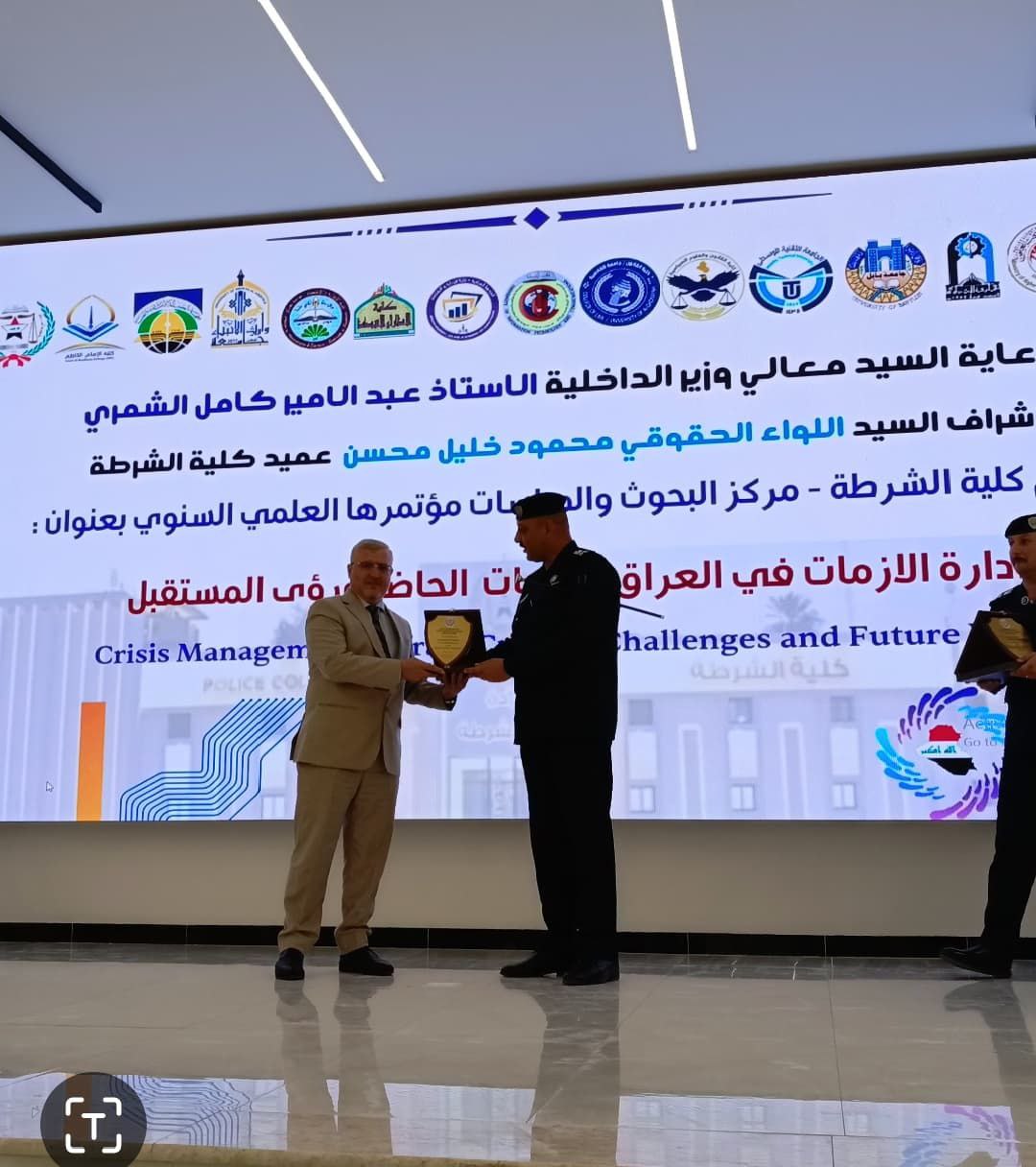 Dr. Aksam Ahmed Fayyad, a faculty member at the College of Islamic Sciences at the University of Warith Al-Anbiyaa (PBUH), participated in the Second Scientific Conference of the Police College 2025, held under the patronage of His Excellency the Minister of Interior, Mr. Abdul Ameer Kamel Al-Shammari, and supervised by Major General Mahmoud Khalil Mohsen, Dean of the Police College. The conference was organized by the Research and Studies Center at the Police College under the theme: