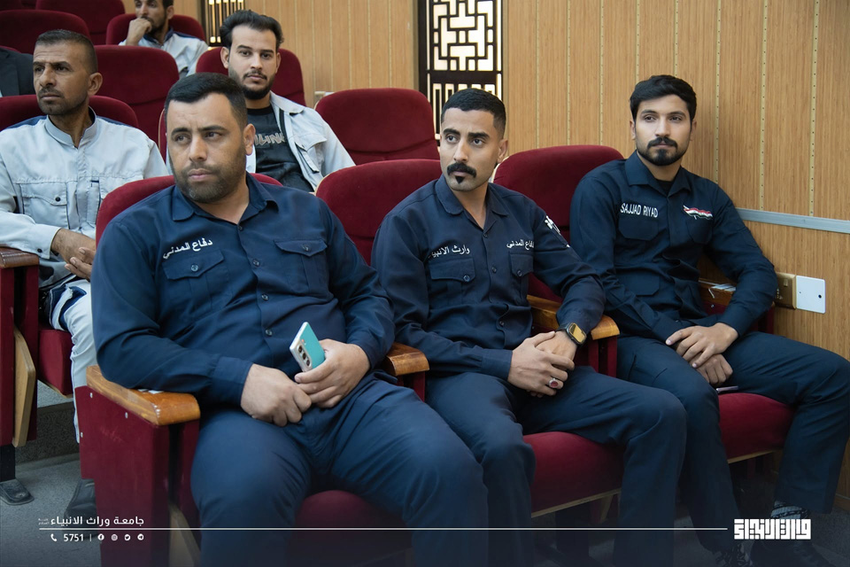 The University Affairs Department, in collaboration with the Campus Care Department at Warith Al-Anbiyaa University (peace be upon him), organised a training workshop on safety procedures and civil defense, aiming to raise awareness of preventive measures and emergency response within the university campus.