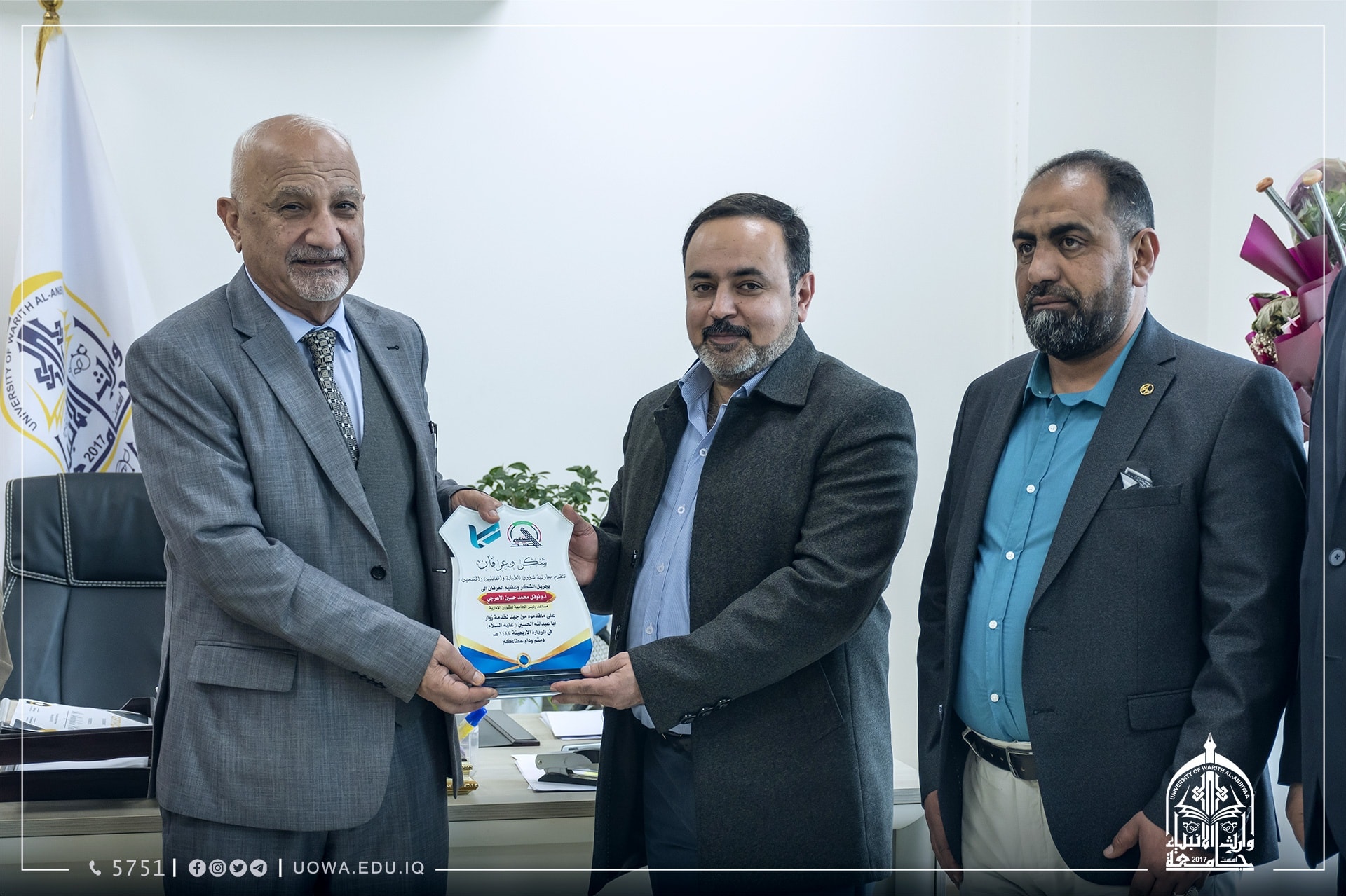The Clinic of the Popular Mobilization Authority, Kirkuk Branch, honors the presidency of Warith Al-Anbiyaa University. In appreciation of their efforts in serving the visitors of the Arbaeenia Imam Hussein (peace be upon him) every year, the Clinic of the Popular Mobilization Committee / Kirkuk Branch honored the University presidency of Warith Al-Anbiyaa as well as the Deanship of the Nursing College. The visiting delegation presented shields of thanks and gratitude for the facilities provided by the university every year through the installation of the mobile hospital inside the university to serve the visitors of Arbaeenia Imam Hussein in addition to volunteers from professors and students of the College of Nursing.