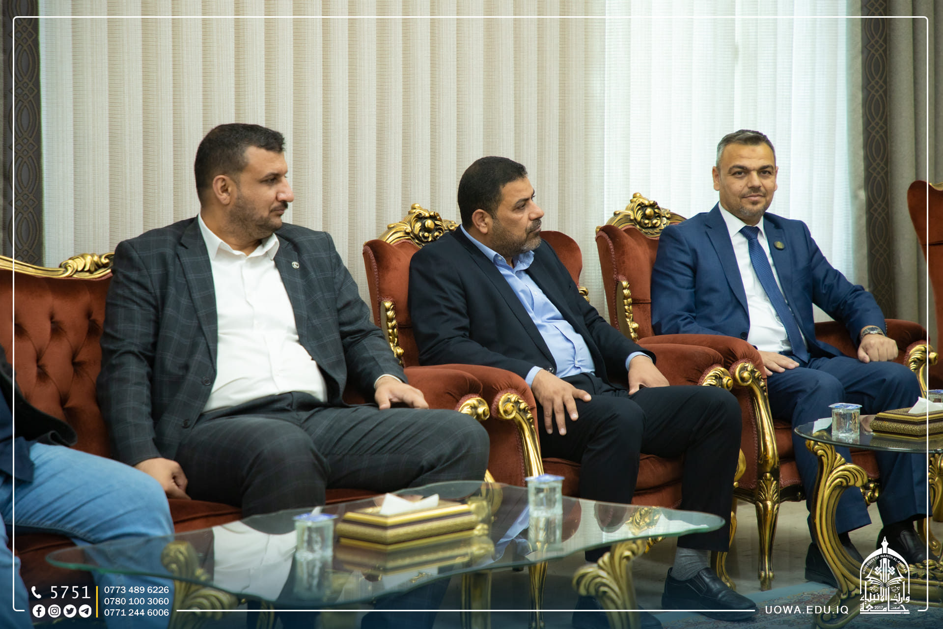 In the context of strengthening collaboration and building ties between educational and religious institutions, Professor Dr. Ibrahim Al-Hayawi, the President of the University of Warith Al-Anbiyaa (AS), welcomed Hajj Rasool Fadhlah, the Head of the System Maintenance Department at the Holy Shrine of Imam Hussain.