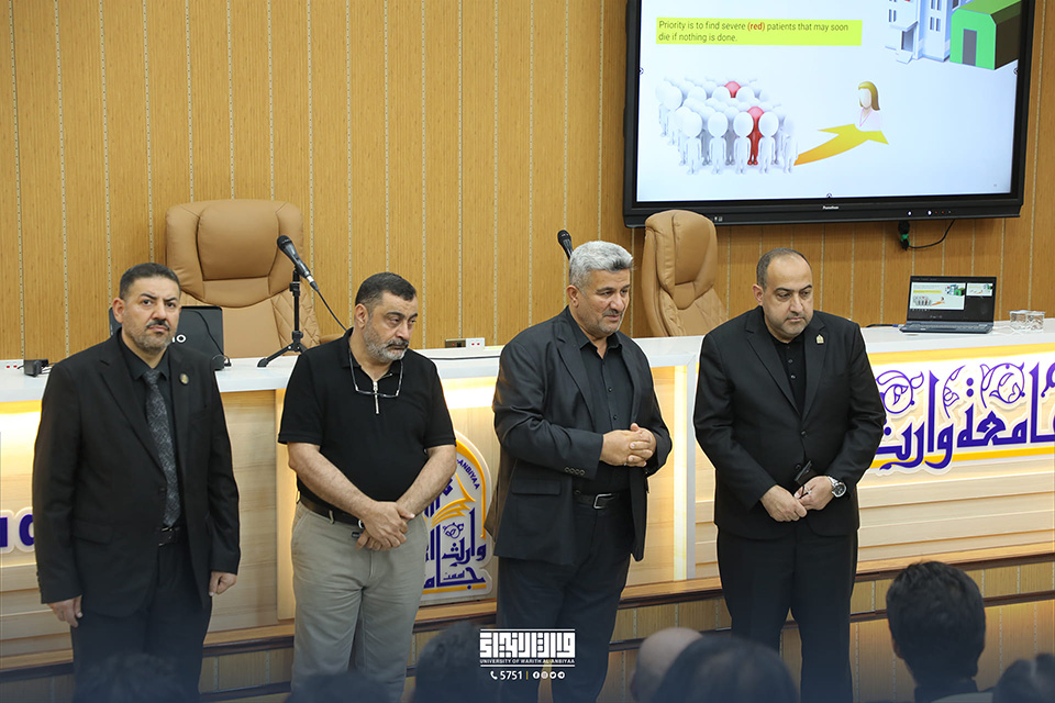 Representatives from the medical detachments at the Holy Shrines of Imam Hussein and Abbas (PBUT), the Middle Euphrates governorates, and the Iraqi Ministry of Health were present at the workshop. The University is committed to improving health competence in society, and this workshop seeks to train health and medical workers on crowd medicine procedures and treating mass casualties during million-visits.