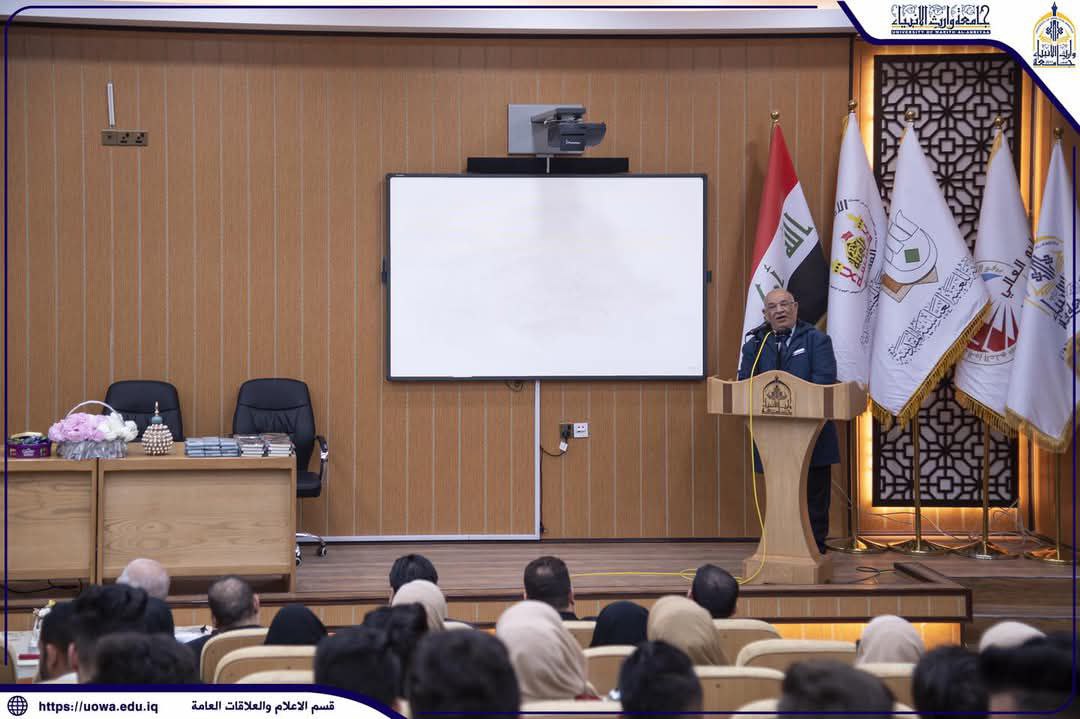 The College of Administration and Economics organized a student gathering for the first-year students to welcome them and help them prepare for the beginning of their university studies. The event was attended by prominent university figures, including the University President, Mr. Ibrahim Al-Hiyawi, his administrative assistant, Dr. Nofal, the Dean of the College of Administration and Economics, Dr. Awad Kazem Al-Khalidi, and a group of college professors. During the event, welcoming speeches were delivered, and important information and guidance were shared to assist the students in their academic journey.