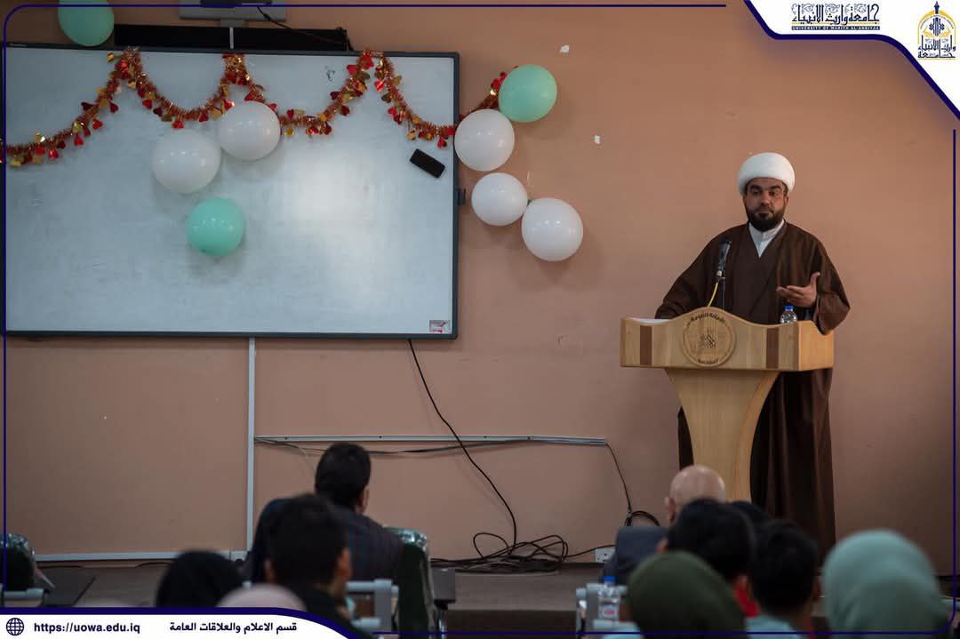 The College of Administration and Economics at the University of Warith Al-Anbiya (Peace Be Upon Him) celebrated the birth anniversary of Imam Al-Mahdi (May God Hasten His Reappearance), with poetic performances and poems expressing love for the Ahl al-Bayt, recited by the college students. In addition, an awareness lecture was delivered by Sheikh Dr. Star Awaid from the College of Islamic Sciences at the university.
