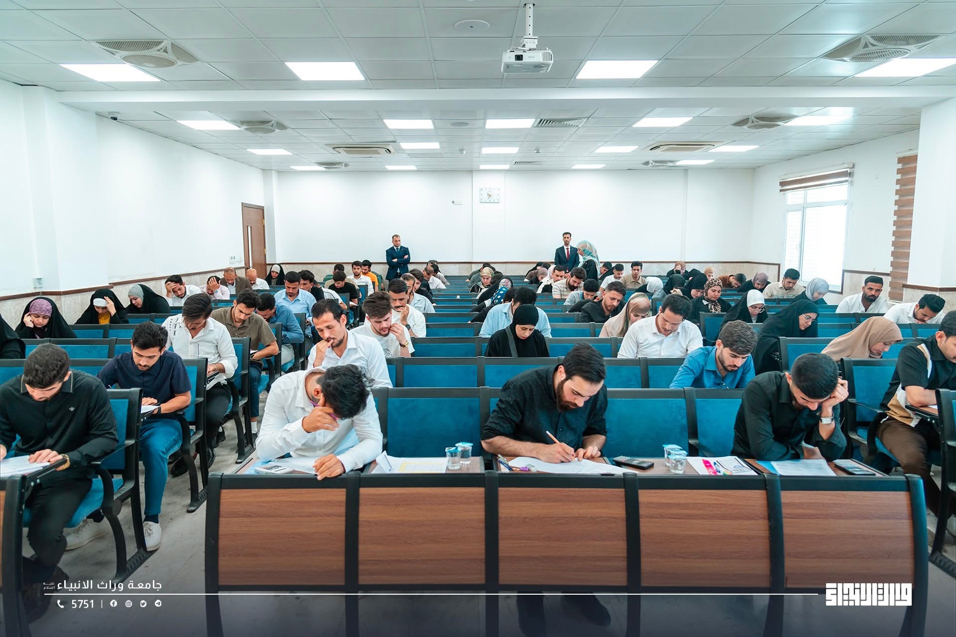 A glimpse of the final examinations at the College of Administration and Economics / University of Warith Al-Anbiyaa, conducted under the direct supervision of the university presidency, with close follow-up by the Scientific Assistant, Professor Dr. Waqid Al-Moussawi, and with the dedicated support and intensive efforts of the college deanships and examination committees