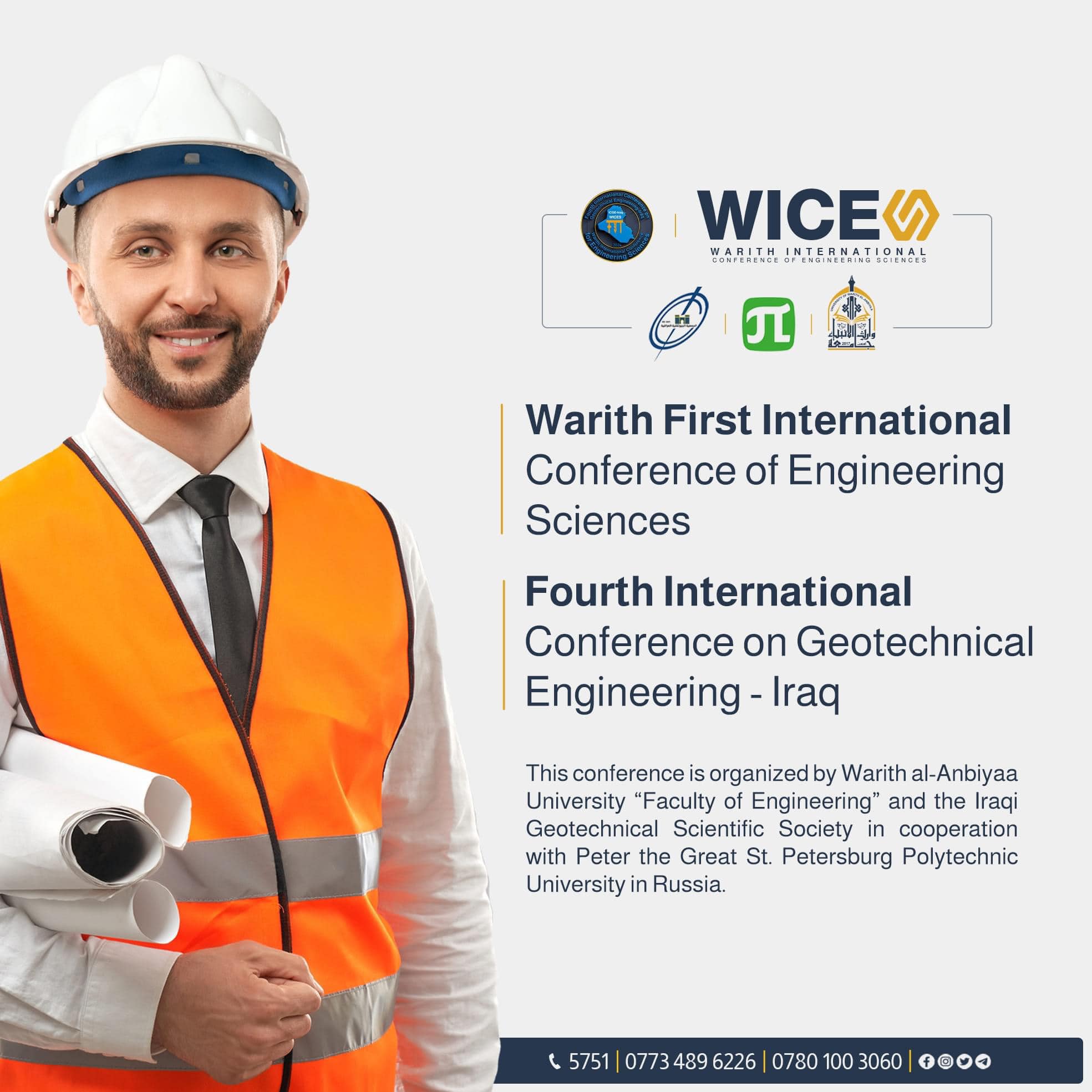 The Faculty of Engineering at Warith Al-Anbiyaa University holds the "First Warith International Conference on Engineering Sciences", in cooperation with the Iraqi Geotechnical Scientific Society, and Peter the Great University of Saint Petersburg in Russia.