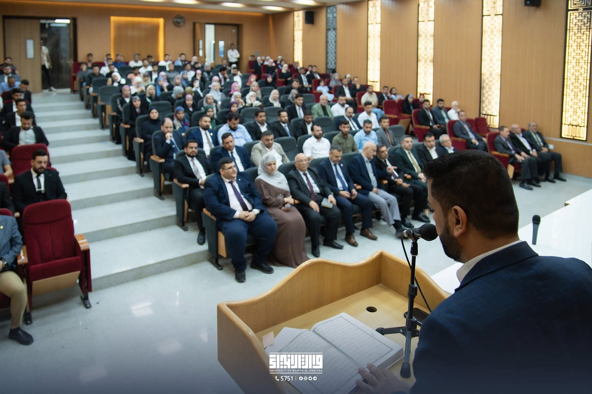 In the presence of the President of the University, Professor Dr. Ibrahim Al-Hayawi, the Administrative Assistant, Professor Dr. Nofal Al-Araji, the Scientific Assistant, Professor Dr. Waqid Al-Moussawi, and the deans of the colleges.