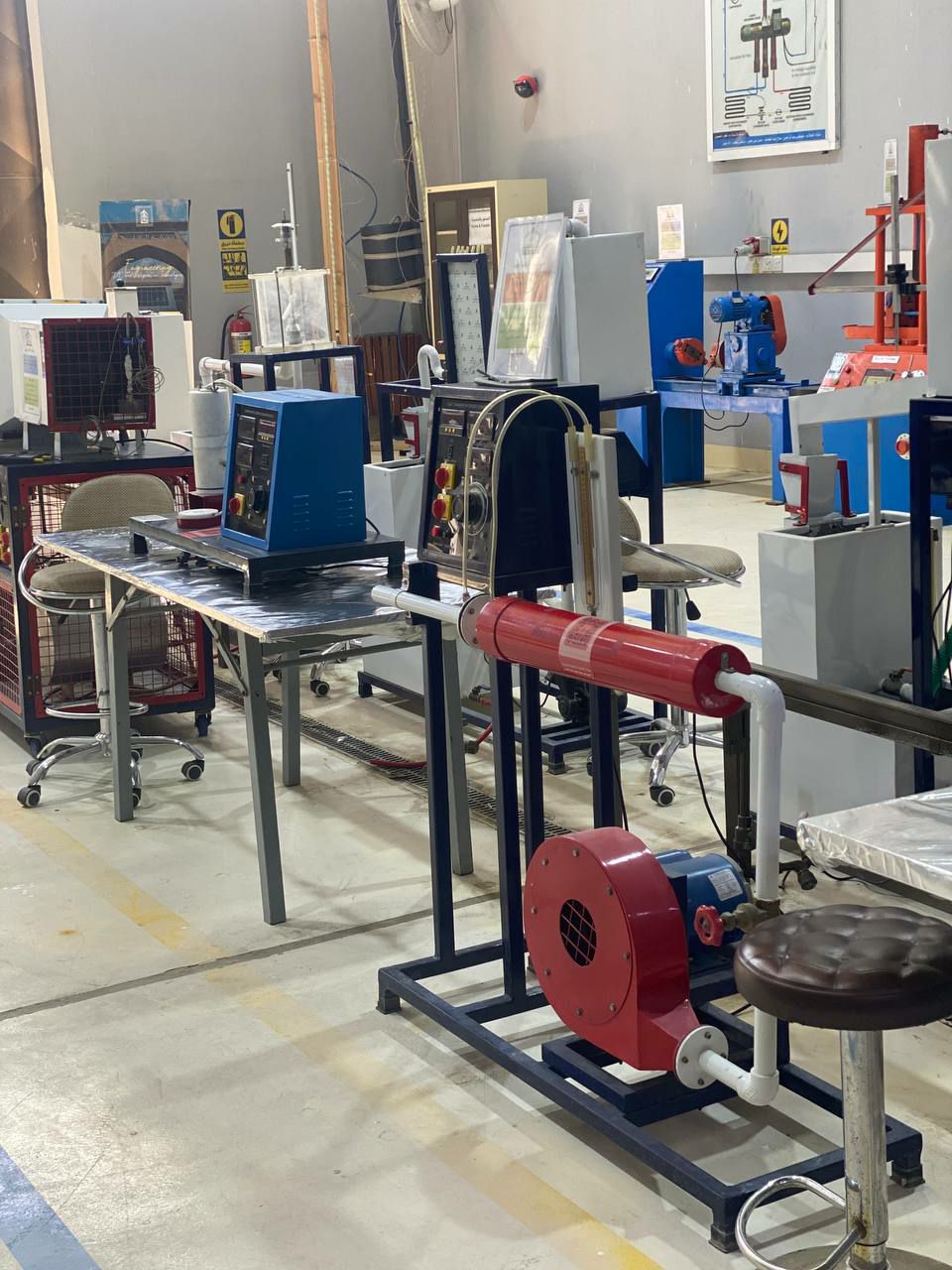 A heat transfer lab is a facility where the mechanisms of thermal energy transfer—through conduction, convection, and radiation—are studied. Experiments are conducted to analyze heat behavior in materials and practical applications like cooling and heating systems. It aims to understand the physical laws governing heat transfer and enhance efficiency in engineering designs