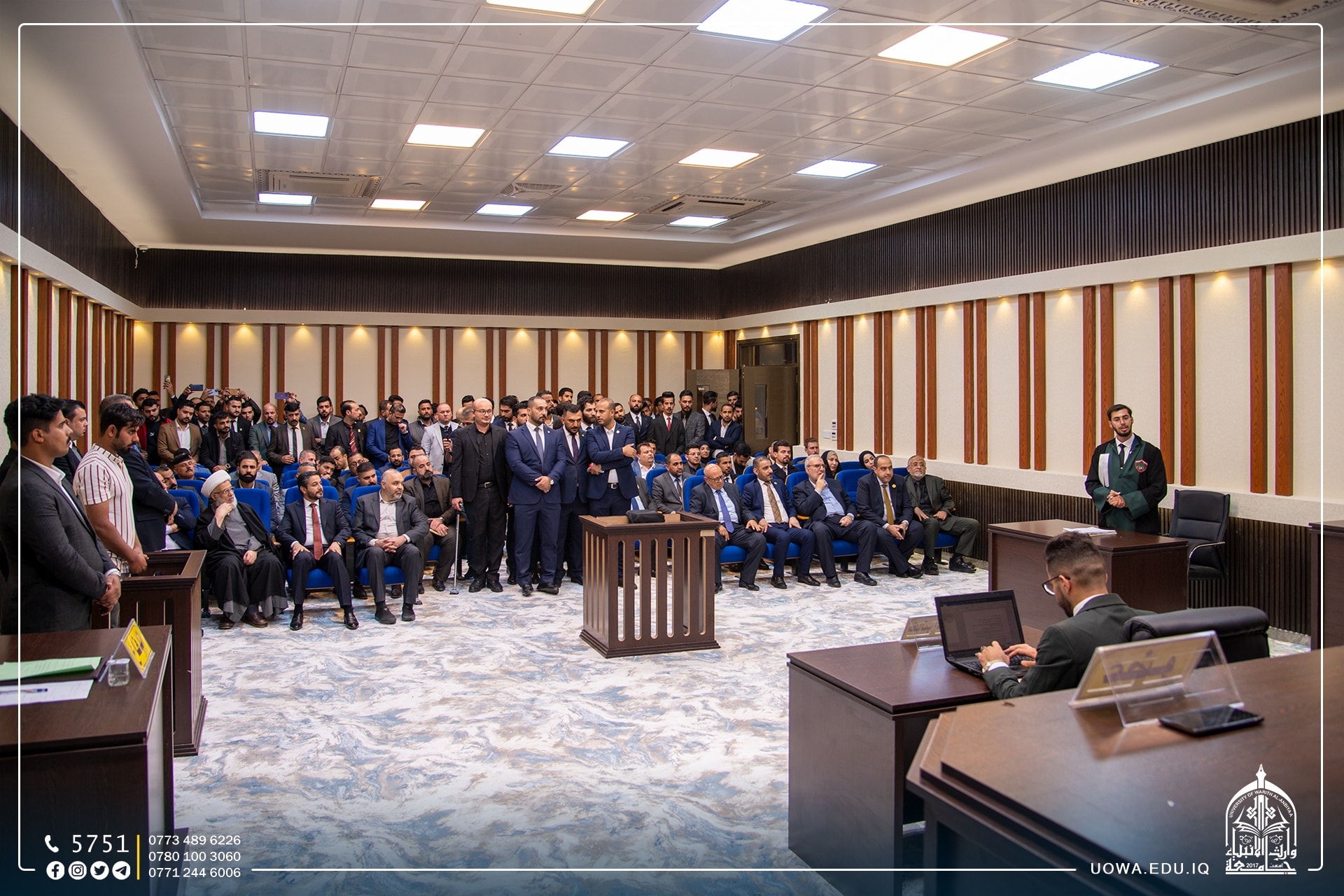 Under the patronage of the University President, Prof. Dr. Ibrahim Al-Hayawi, and in the presence of the Administrative Assistant, Prof. Dr. Noufal Al-Aaraji, and under the supervision of the Dean of the College of Law, Assist. Prof. Dr. Ali Al-Sharifi, the College of Law, in cooperation with the College of Law at the University of Karbala, held its First Legal Scientific Competition.