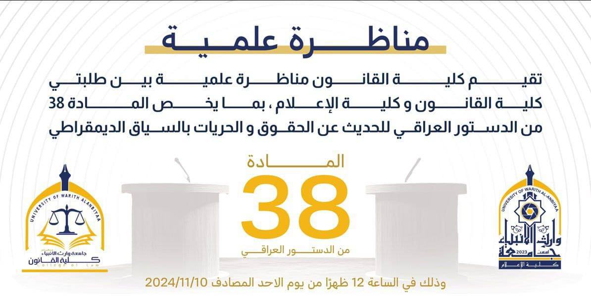 A scientific debate was held in the classrooms of the College of Law between its students and the students of the College of Media. This is a wonderful opportunity to showcase different perspectives on topics related to law and media, as well as to exchange ideas and foster interaction among students from various disciplines. Such debates can be rich and enriching, as participants address common or intersecting legal and media topics.