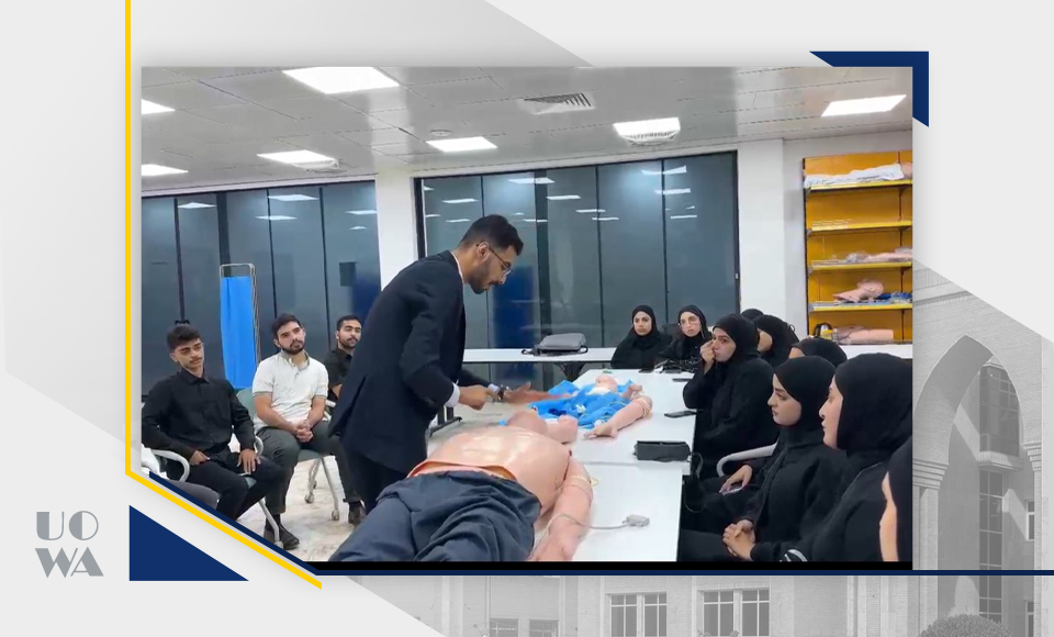 Within the framework of community cooperation and health solidarity, the College of Medicine at Warith al-Anbiya University (peace be upon him) organized a first aid training workshop targeting non-medical staff from the Athar al-Ataa team affiliated with the Karbala Provincial Council. The workshop was delivered by a number of sixth-year medical students holding training certificates accredited by the World Health Organization (WHO) and the American Heart Association (AHA). During the workshop, they provided important practical information on dealing with emergency situations and how to save lives.