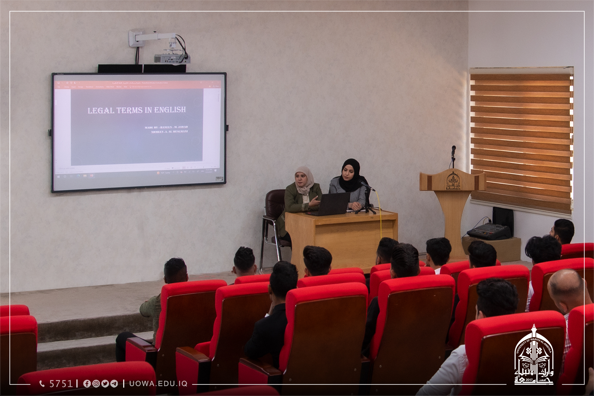 The Continuing Education Center, in collaboration with the College of Law, held a scientific course titled "Legal Terminology in the English Language", delivered by Assist. Lecturer Haneen Mohammed Jawad and Assist. Lecturer Nermin Abdulameer Salman, over a period of three days.
