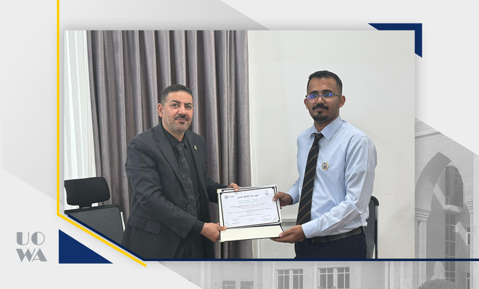 The thesis defense took place on Monday morning, June 23, 2025, in the Al-Khwarizmi Hall, in the presence of the Dean of the College of Computer Science and Information Technology, Dr. Mowaffaq Kadhim Al-Hasnawi, along with a group of faculty members and researchers. Dr. Al-Ghanmi played a prominent role in enriching the scientific discussion and providing insightful academic perspectives, reflecting his esteemed scholarly standing and continuous efforts in supporting scientific research.