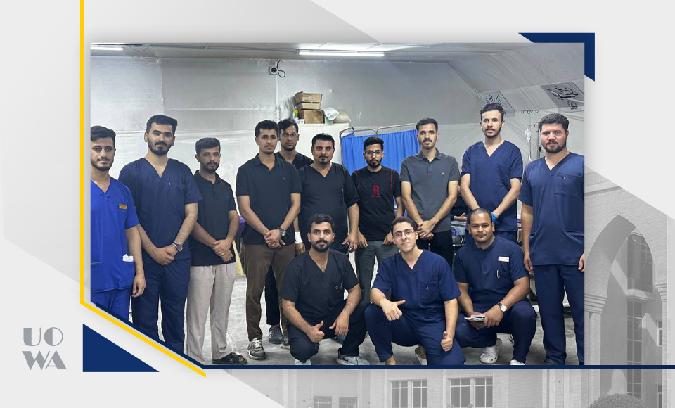 Amidst the sublime spiritual atmosphere of the immortal Arbaeen pilgrimage, the Deanship of the College of Medicine at Warith al-Anbiya University extends its highest expressions of appreciation, pride, and respect to our dear students participating in the medical service detachments deployed along all pilgrims' routes. We express our deep appreciation for the time, effort, and expertise they have devoted to treating, curing, and alleviating the pain of the honorable pilgrims. This would not have been possible without the desire, knowledge, and skill of this good group of our sons and daughters, which enabled them to perform this great task. The evaluations we received from the doctors supervising the work of our volunteer students were wonderful and a source of pride for us all. All supervisors noted the high discipline of our dear students, in addition to their academic potential and clinical skills, which qualify them to work at all times and under the most difficult conditions. This undoubtedly reflects the efforts of the college's professors in training and developing the theoretical, practical, and clinical skills of our dear students. This would not have been possible without the continuous support and ongoing supervision of the esteemed University President. In conclusion, we can only say:Peace be upon you, O Aba Abdullah, and upon the souls that have resided in your courtyard. May God's peace be upon you forever as long as I live and as long as night and day remain. May God not make this my last visit to you.Deanship of the College of Medicine, Warith al-Anbiya University