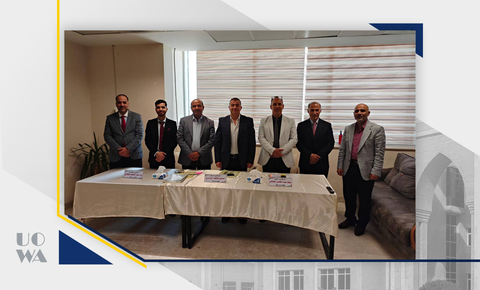In the presence of the Dean of the College of Medicine, Prof. Dr. Ali Abdul Saadoun Al-Ghazi, the Assistant Dean for Scientific Affairs, Dr. Laith Al-Hussaini, and the Assistant Dean for Administrative Affairs, Dr. Anwar Al-Dahan, the meeting of the Main Accreditation Committee at the College of Medicine - University of Warith Al-Anbia was held on Tuesday 10/3/2025, in the presence of the heads of the axes.