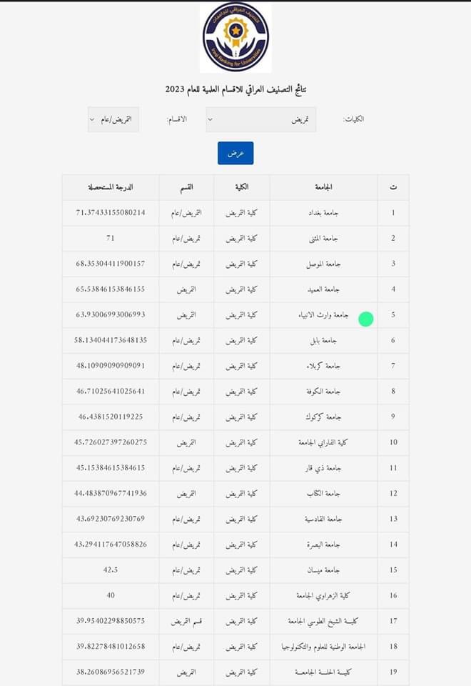 In order to develop the educational environment and measure the indicators of institutional and programmatic performance and the path of scientific research, the Ministry of Higher Education and Scientific Research announces the results of the Iraqi classification. This classification is carried out by the Supervision and Scientific Evaluation Department in the Ministry of Higher Education and Scientific Research with the aim of improving the educational environment. The Iraqi classification of colleges depends on...