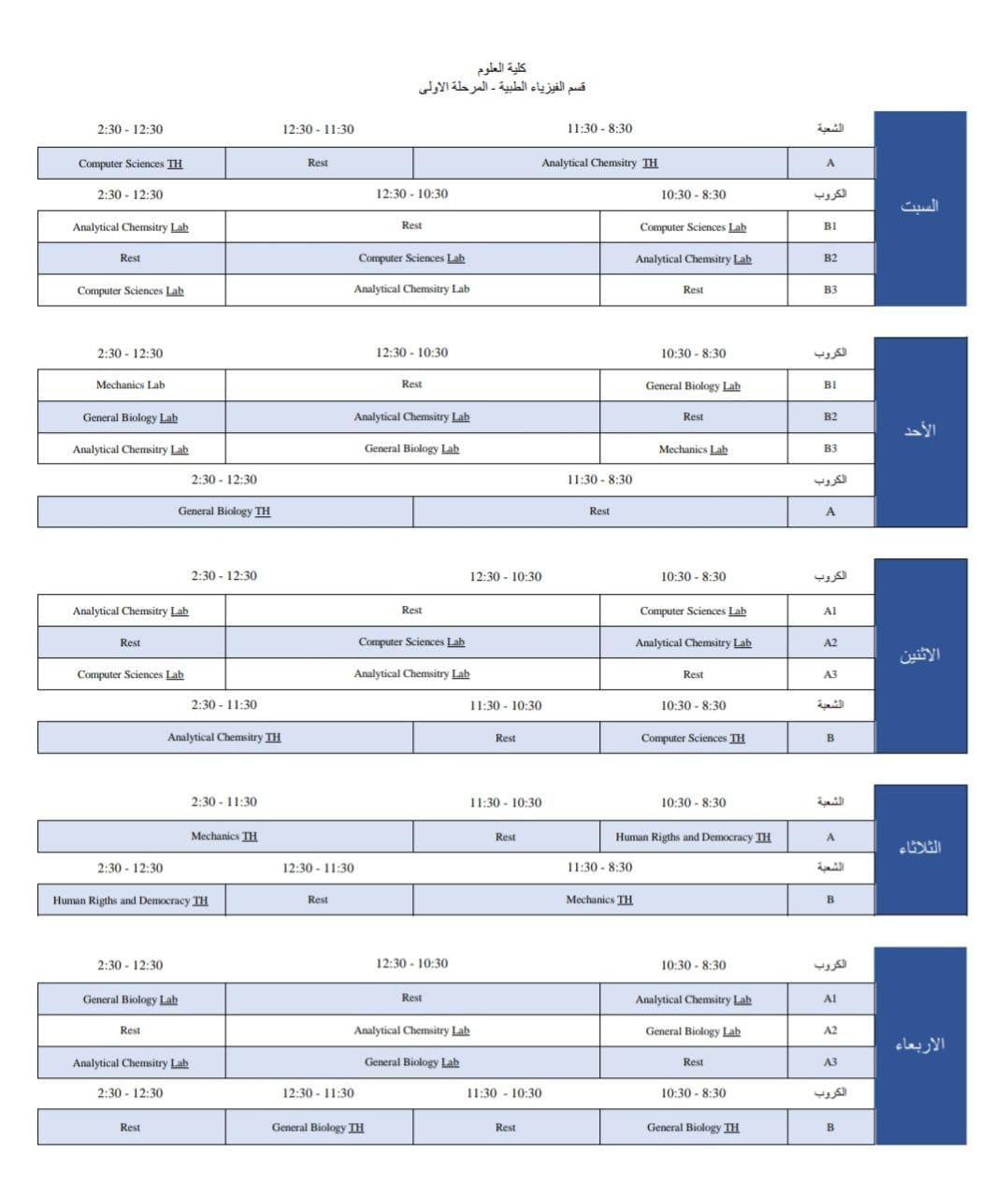 Weekly Schedule for First Year Students in the Medical Physics Department