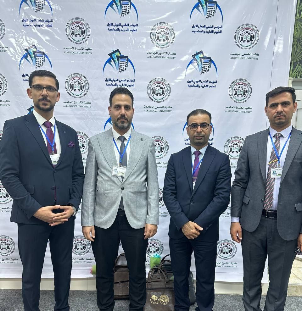 Prof. Dr. Fahad Mughaimish Al-Shammari, Dr. Mohammed Majid Al-Hamdani, Dr. Hussein Mohammed Ali Kashkoul, and Mr. Mortada Mutayi Al-Fatlawi from the College of Management and Economics at the University of Warith Al-Anbiyaa (Peace Be Upon Him) participated in the First International Scientific Conference on Administrative and Accounting Sciences. The conference was held at Al-Kunooz University in Basra on May 17-18, 2023.
