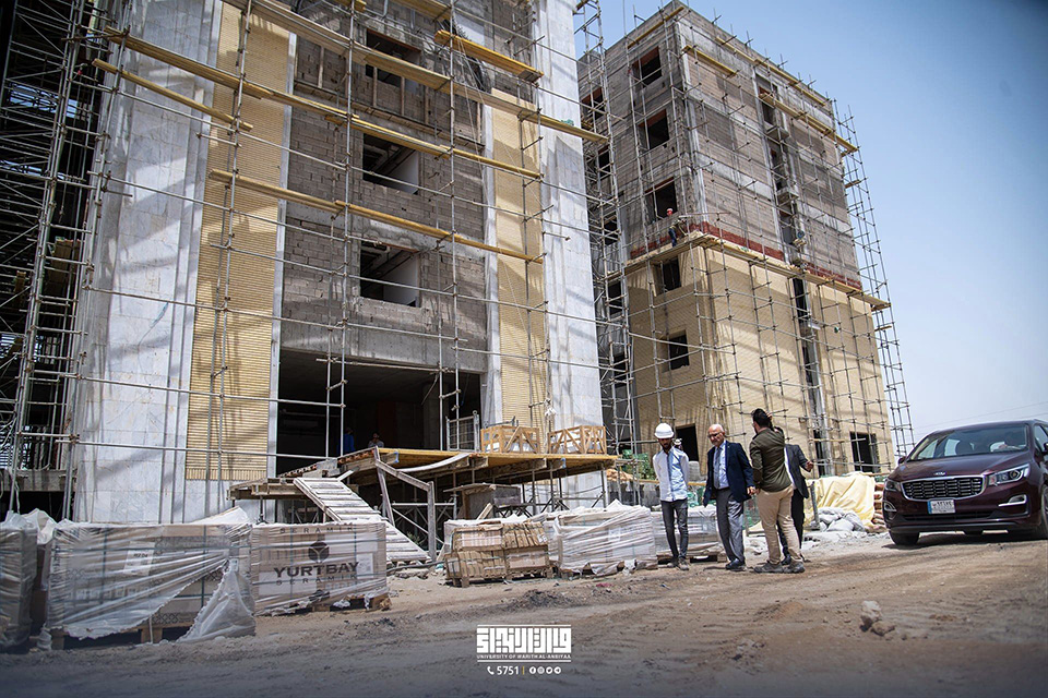 A field visit to the University of Warith Al-Anbiyaa (PBUH) expansion projects led by esteemed President of the University, Professor Dr. Ibrahim Al-Hayawi, and respected Dean of the Faculty of Medicine, Professor Dr. Ali Abd Saadoun, with a review of the completion rates that have reached advanced stages.