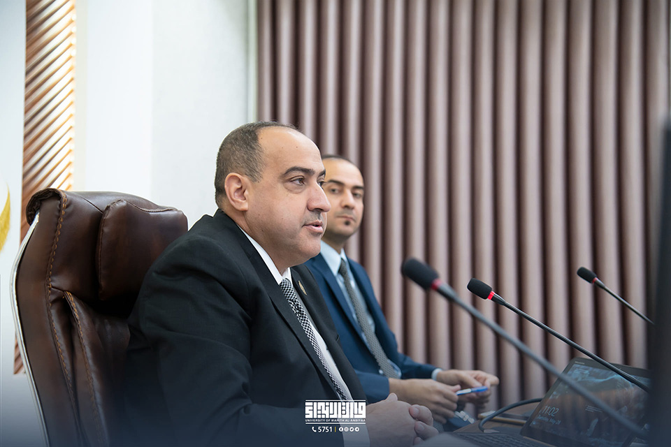 Assistant Lecturer Ayman Al-Jubouri, the director of the department of registration and student affairs, provided a thorough presentation on the state of work in the department, outlining the registration team's efforts to address the current obstacles. He also went over the department's future development goals, which included implementing contemporary technology to expedite registration processes and update the database.