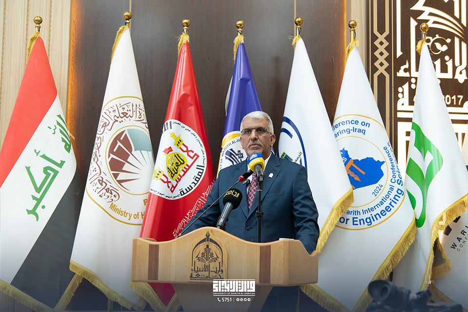 Professor Dr. Basim Nayil Khalil Al-Saadi, President of the University of Karbala, represented the Minister of Higher Education and Scientific Research at the First International Conference on Engineering Sciences organised by the College of Engineering at the University of Warith Al-Anbiyaa (PBUH).