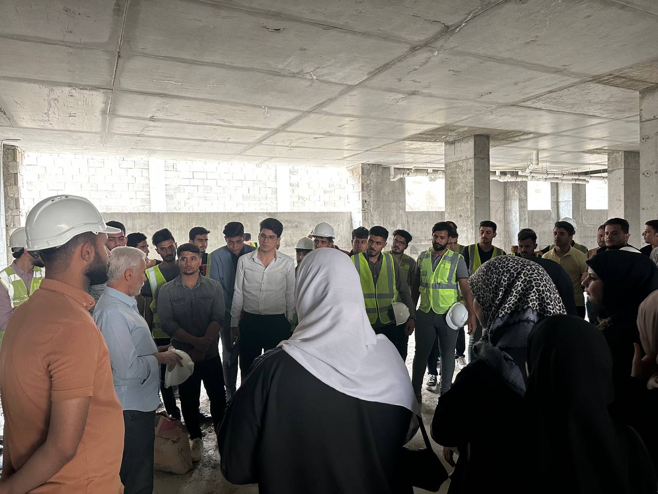As part of the practical activities organized by the Civil Engineering Department, second-year students, accompanied by faculty members, visited the expansion projects of the university. They observed the construction phases of the university buildings and the development stages of the roads within the university premises.