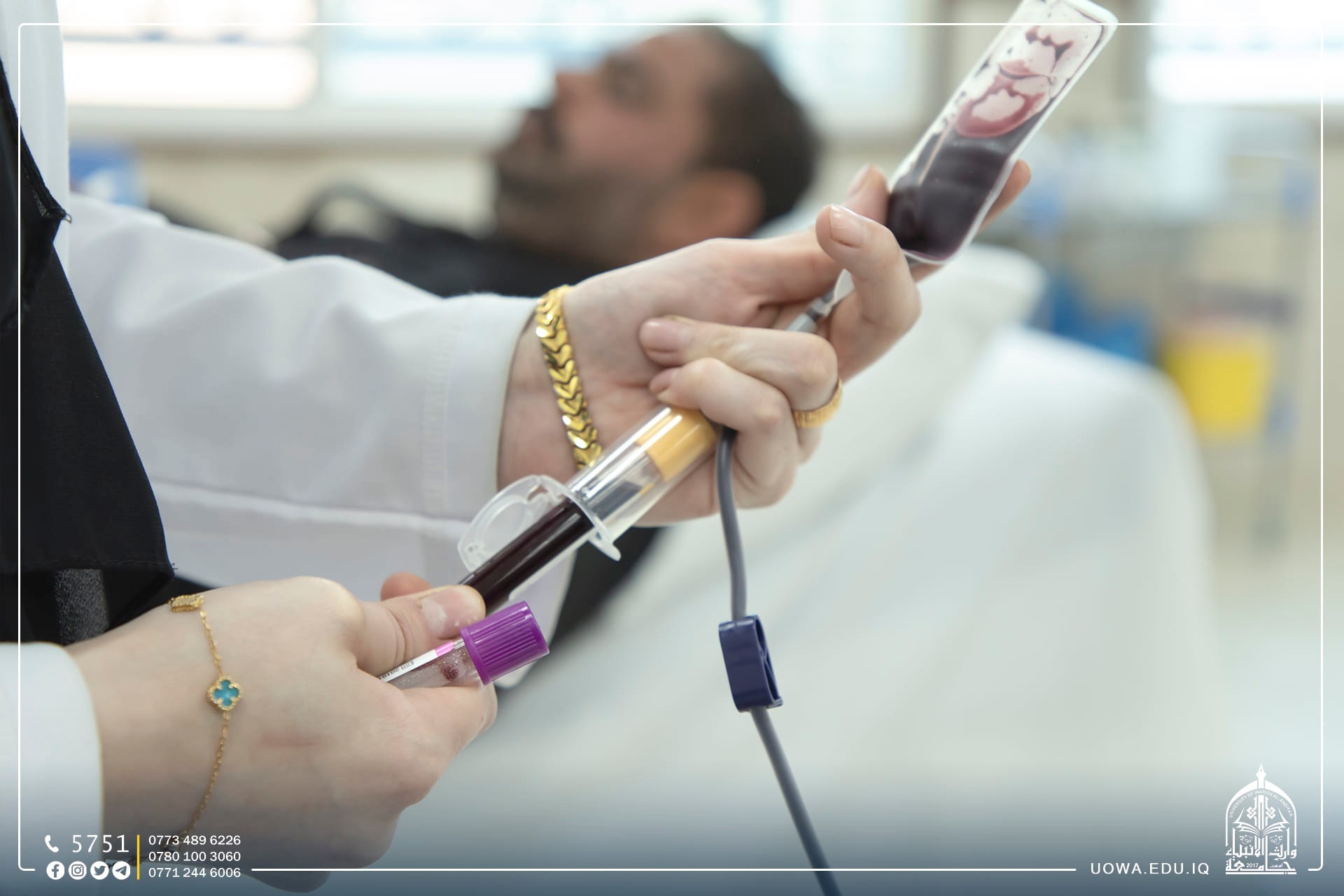 The Nursing College at the University of Warith Al-Anbiyaa (peace be upon him), in collaboration with the Holy Karbala Health Department, organized a blood donation campaign. This campaign aims to support patients in the holy hospitals of Karbala who require blood donations. Faculty members, staff, and students of the university participated in the campaign, which also serves as practical humanitarian lessons for nursing students.