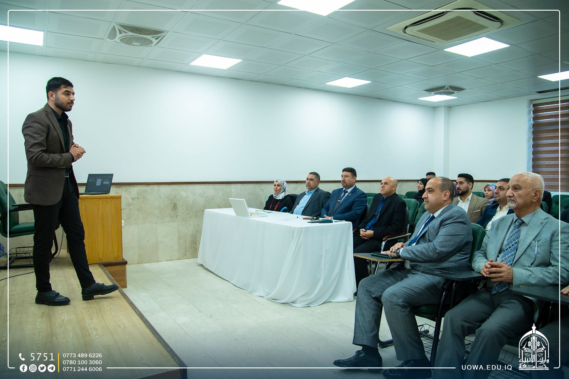 The Department of Civil Engineering, in collaboration with the Department of Scientific Affairs at the University of Warith Al-Anbiyaa (Peace Be Upon Him), organized a scientific seminar titled "Modern Construction Technology Using Hydraulic Jacks Systems Rapid Bridge Replacement on 5 Days Timelapse." The seminar was presented by Dr. Haitham Hassan Mutab Al-Daami, an expert in the design of steel structures and concrete facilities from the University of Babylon.