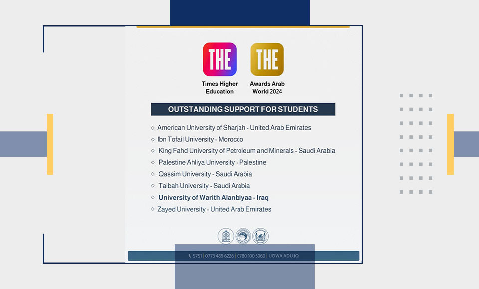 To further strengthen its standing as a preeminent educational institution in the region and worldwide, the University of Warith Al-Anbiyaa (PBUH) was one of several Arab universities nominated for the Times Arab World Award 2024.