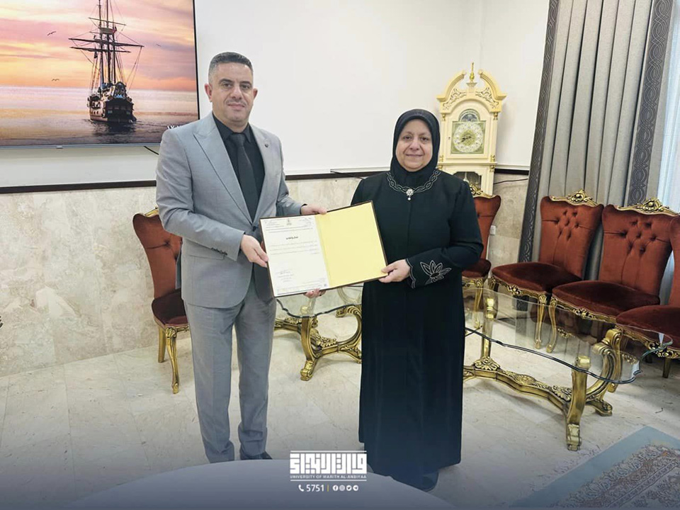 The governance of the University of Warith Al-Anbiyaa (PBUH), headed by Professor Dr. Ibrahim Saeed Al-Hayawi, received Dr. Rajiha Abdul-Hassan Hamza, President of the National Council for Accreditation of Iraqi Nursing Colleges Programmes. She was received by the Dean of the College of Nursing, Professor Dr. Murtadha Al-Jubouri, and a number of teaching staff at the college.