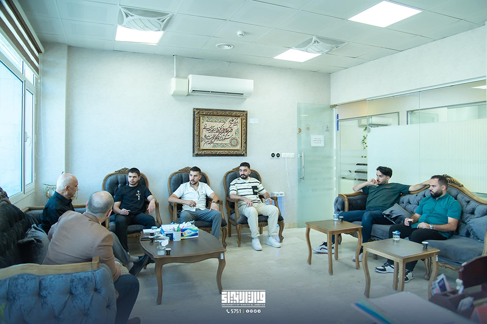 Professor Dr. Nawfal Al-Araji, Vice-President of Administrative Affairs at the University of Warith Al-Anbiyaa, met arriving students in his private office.