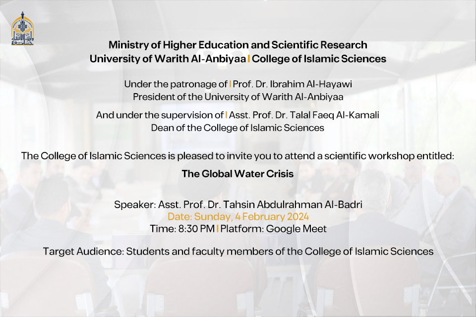 The University of Warith Al-Anbiyaa, through its College of Islamic Sciences, has taken a proactive role in shaping national and regional discussions on sustainable water management — a critical theme within the United Nations Sustainable Development Goals (SDG 6: Clean Water and Sanitation).